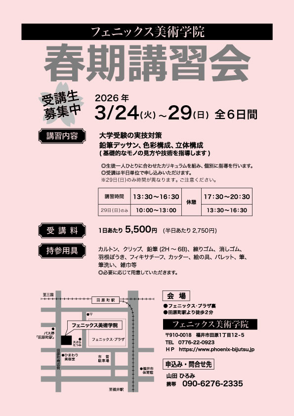 フェニックス美術学院は芸術大学、美術系大学、短大、専門学校などを目指す皆さんのための予備校です。